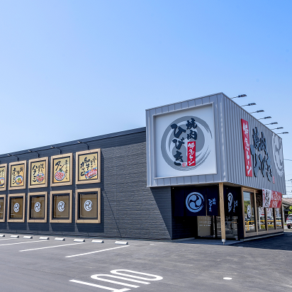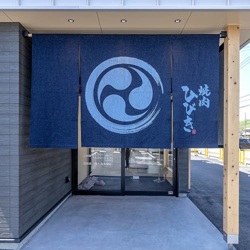グレー地の看板に『焼肉ひびき』の文字が目印です!メニューの看板もあり、ふらっと中を覗き込みたくなるようなおしゃれな外観!